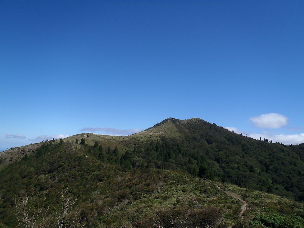 P1394の西を巻いて太古の森の西から北に張り出す小尾根を降りると展望岩が有ったので馬駈け場方面を眺める、奥峰の稜線に出ればどこからでも見える景色であるが、展望のない場所からわずかな空間で有るが除けるのがまた嬉しいものである。