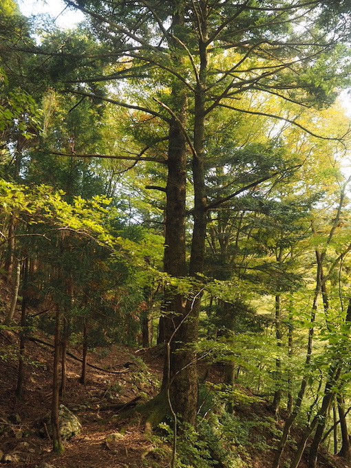 考えたことはありませんでしたが、古道に沿ったところだけに忽然と樅の大樹が出現するので、やはり植えられたものではないでしょうか。
