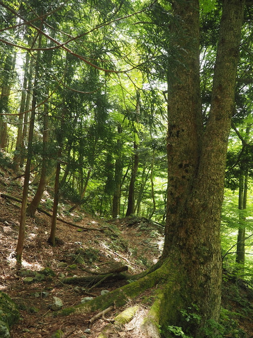 やがて古道の脇には道標の代わりにいくつもの苔むした炭焼き窯の跡が現れる。かつてはこれらの炭焼き窯で作られた炭を琵琶湖側に運び、葛川の人々の重要な生活の糧だったのだろう。ほとんど人の通ることのない古道にひっそりと佇むこれらの炭焼き窯は古い書物に挿入された栞の如く、遠い記憶を静かに物語るようだ。