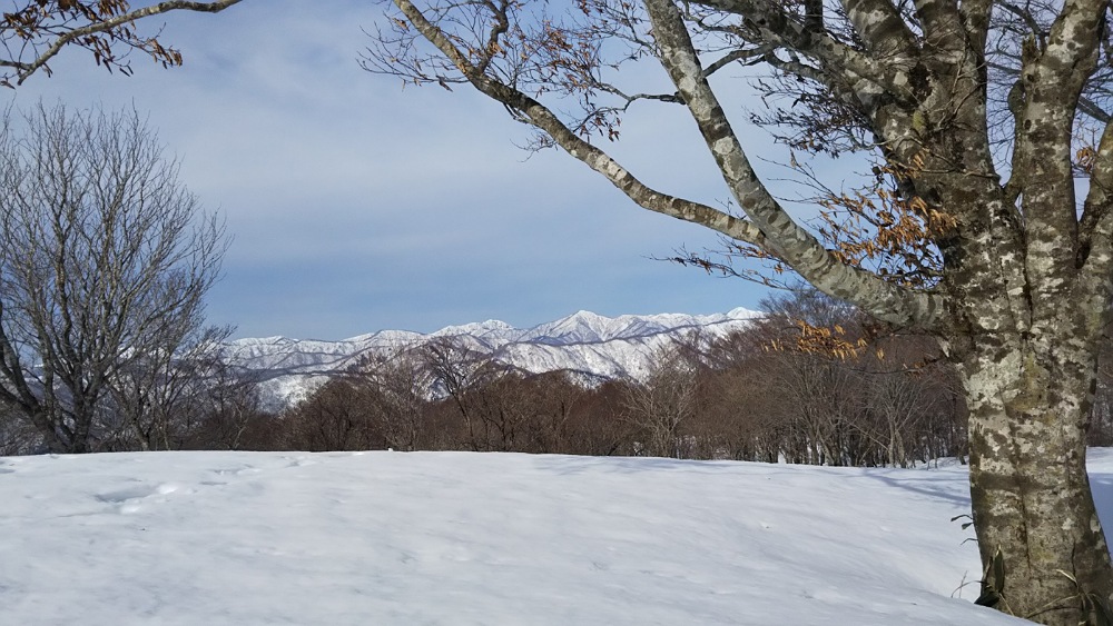 奥美濃の山やま、どこまでも白い白山、御嶽、乗鞍、北アルプス、中央、南アルプスまでも望みながら、