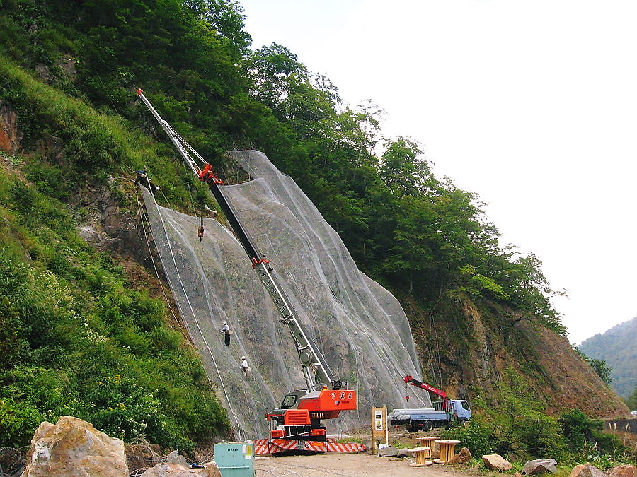 早くも工事はのり斜面のフェンスの設置、広範囲な工事ですよ。