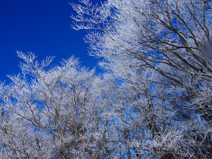 雲ひとつない限りなく蒼い空に白銀の枝先を伸ばす山毛欅の樹々。