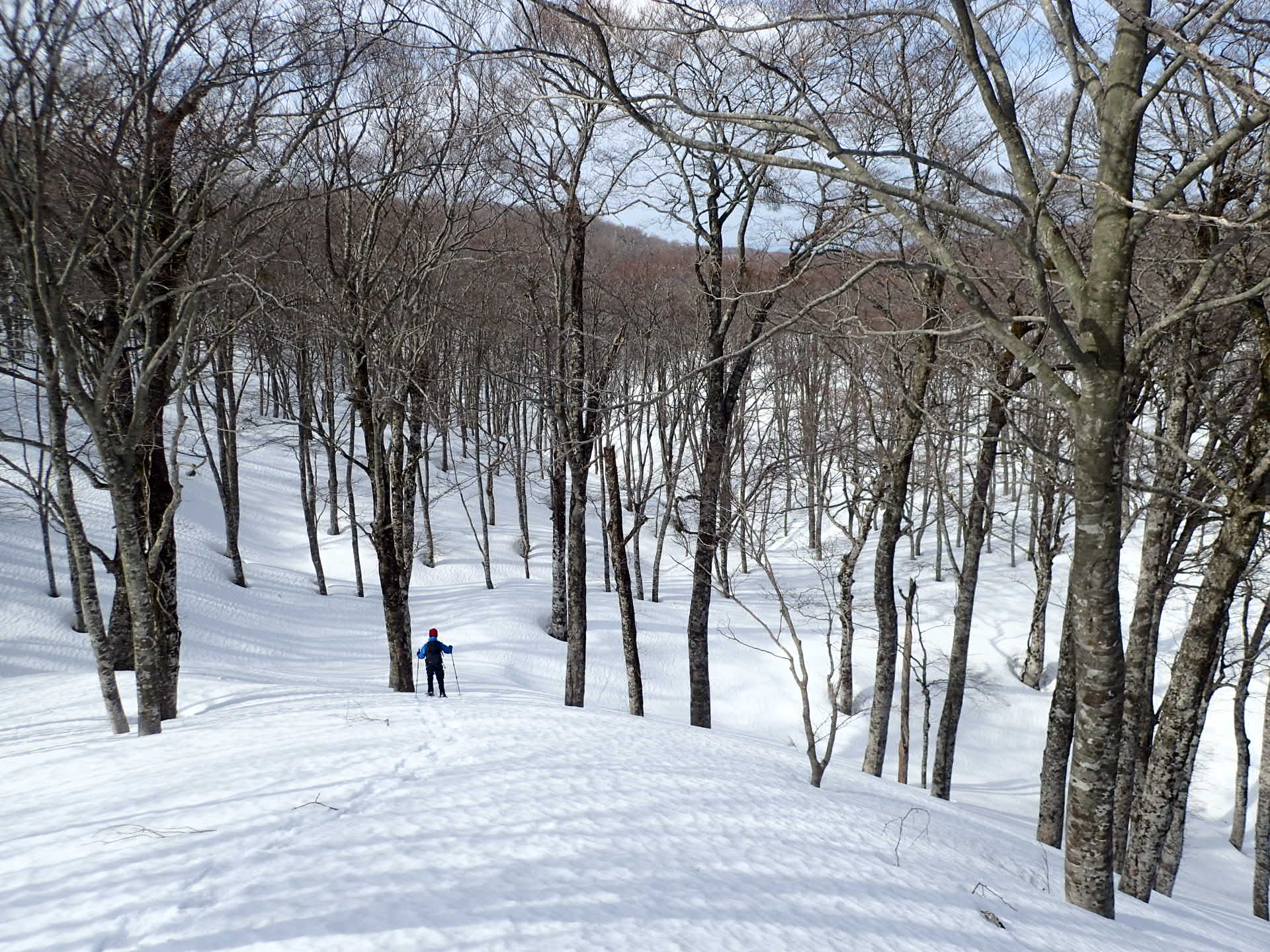 無雪期は薮なので地形が判りにくかったですが、雪が積もるとこんな素晴らしいうねりがあったとは。