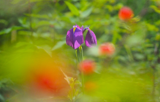 この花、菖蒲にしては花弁の色が赤みがかっているので、園芸種の「花菖蒲」ではなくて、原種の「野花菖蒲ではないでしょうか」