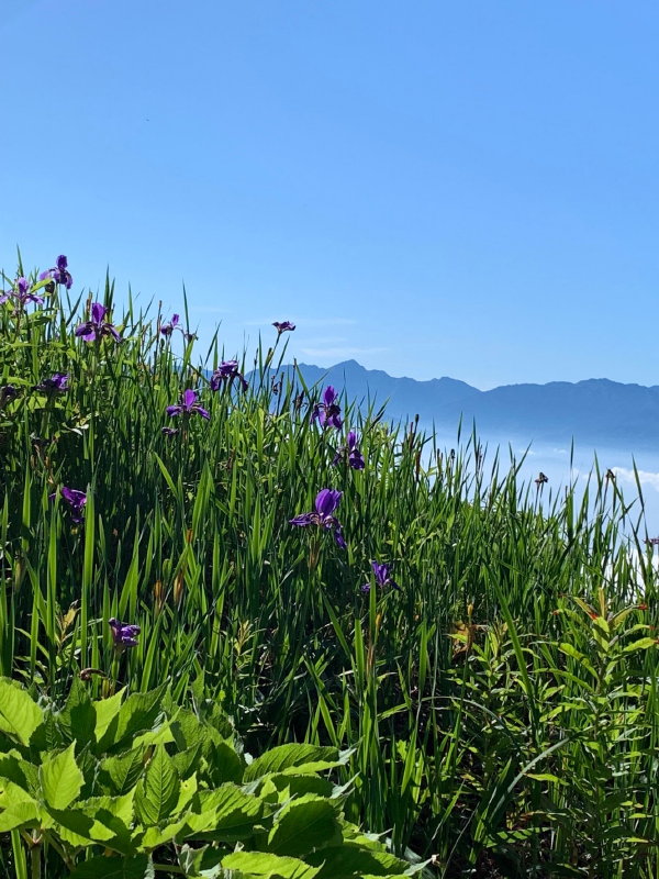 白山 銚子ケ峰  大日岳を考えていたがアヤメの先に南アルプス連峰の素敵な画像が見て