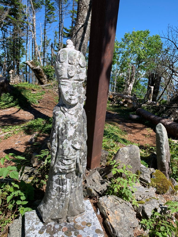 山頂に着くと石仏や石塔が並んでいて神秘的な感じがした。