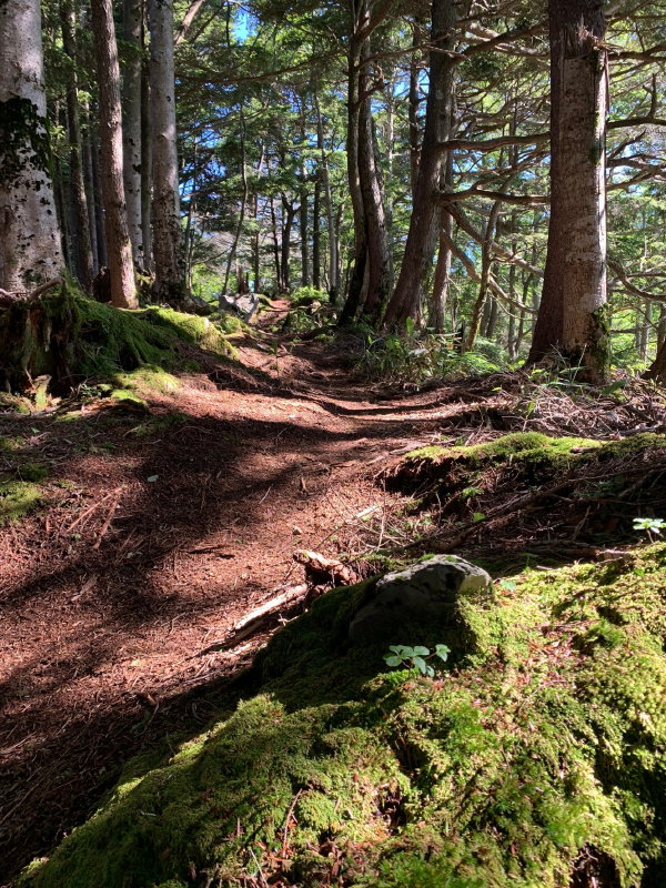 歩きやすくふかふかの登山道でとても膝にやさしい登山道でした。