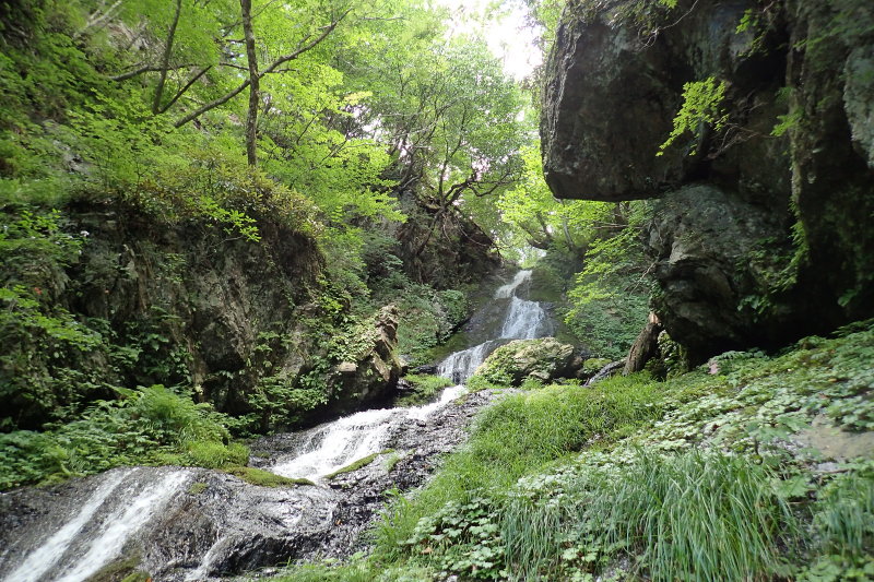 そのまま、流れを左に見て、蕎麦粒山の鼓動を感じながら、一歩を味わいながら、滝の上の世界へと近づいていく。