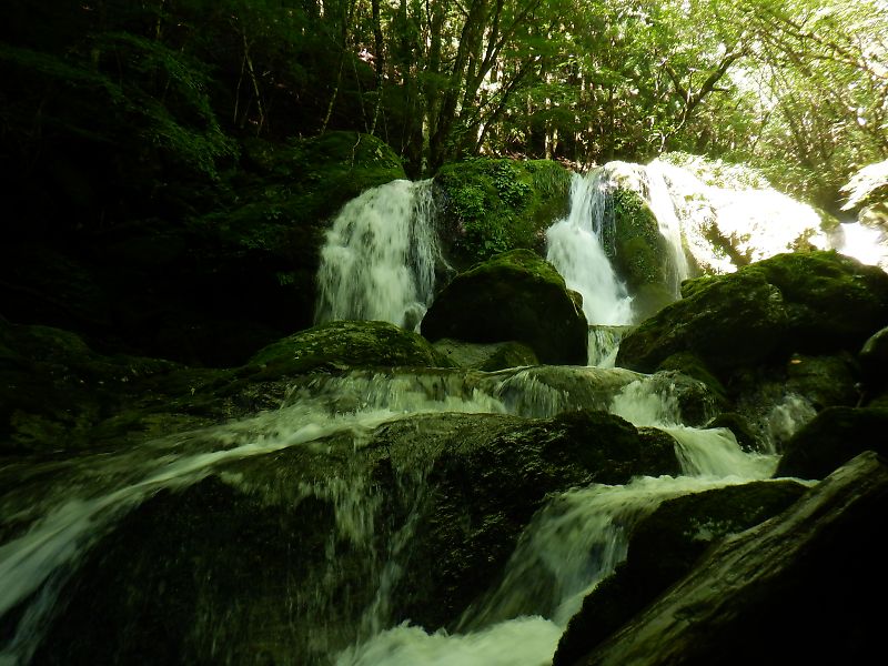 大滝の手前から時々陽の光を浮雲が遮ってくれるようになった。