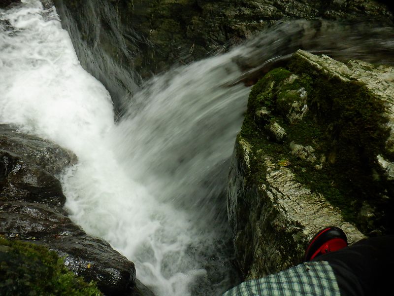 左ひざも乗せた。立ち上がる。チョックストーン滝突破の証拠写真を撮る。