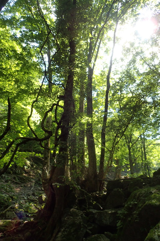 素晴らしい風景はどこまでも続いていきましたね。「木漏れ日に光るサワグルミの森と苔むした岩が織りなす雰囲気」に、夢見ごこちになりました。
