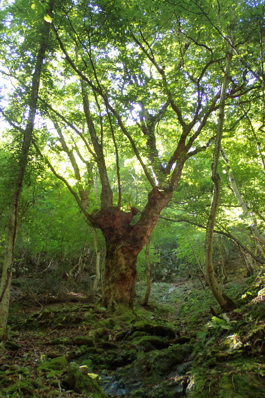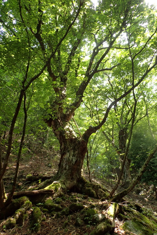 これがまた素晴らしかった。濃密なサワグルミの森の中にトチの大木が散見されるようになった。中でも最大のも
