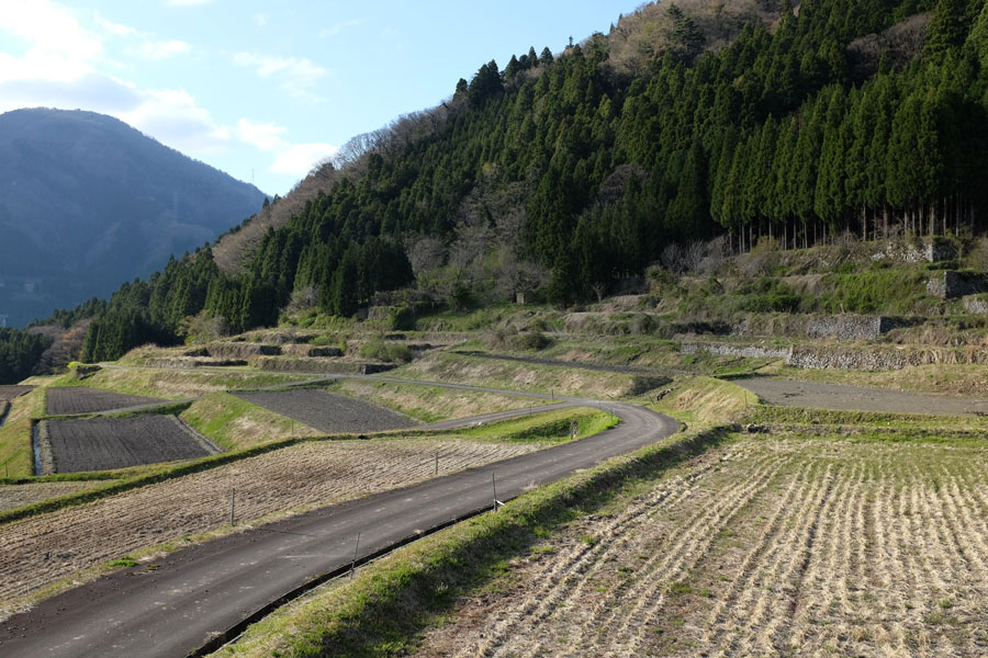 この先、長い道路歩きにはなりますが、この時期の山里でしたらさして苦にはなりません。まだ水の張られてない田圃のあぜ道にはつくしがいっぱい。