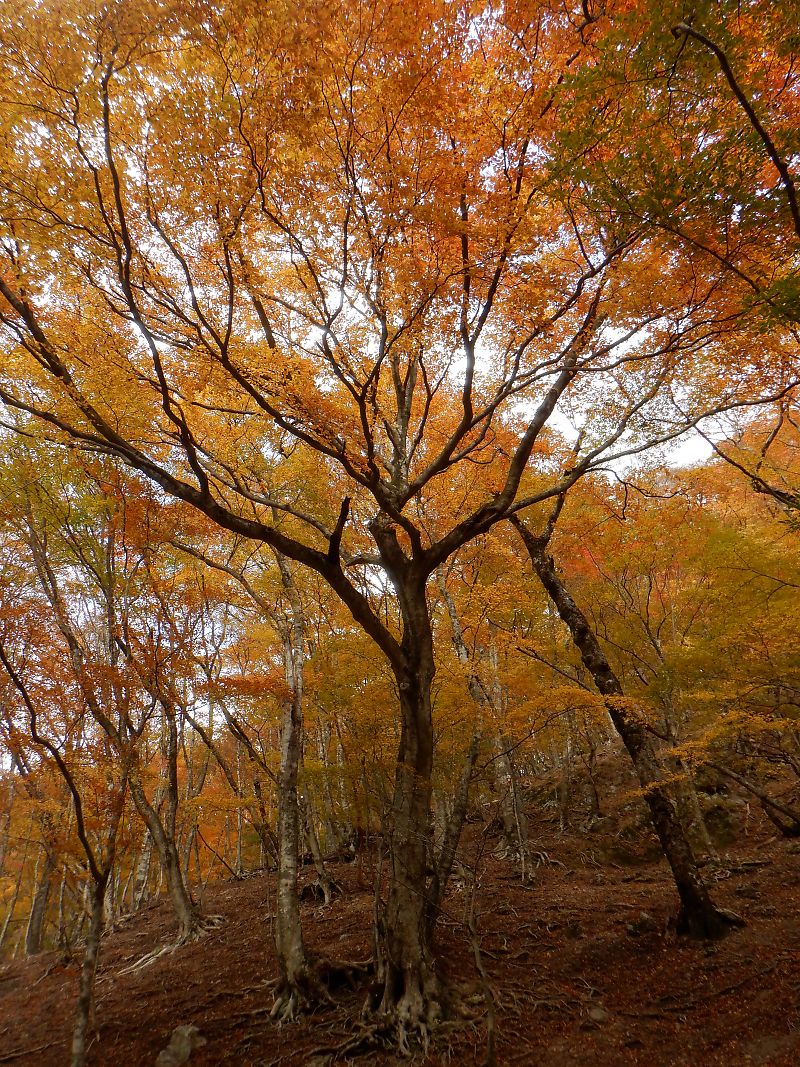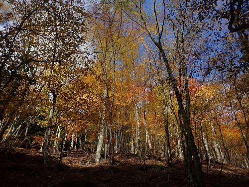 桧塚劇場も紅葉するまえに落葉しちゃいましたね。稜線上のシロヤシオの紅葉は壊滅状態でしたね。