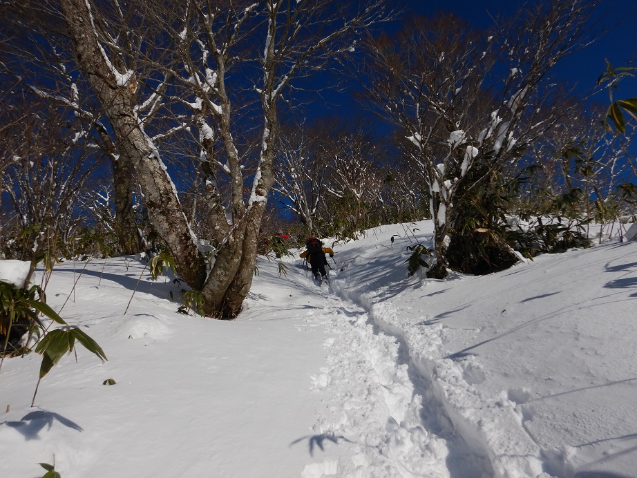 最初から急登で、スノーシューを履いた頃にはバテバテでした。