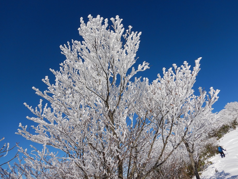 帰りも天気が良く、霧氷が次々に落ちていった。