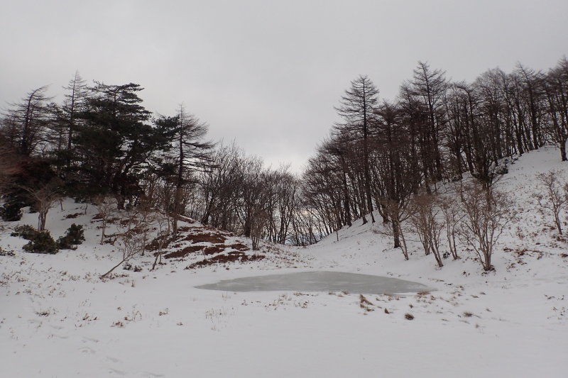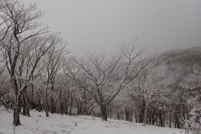 楽しみにしていた霧氷が現れる様子もなく、鉛色の空と冷たい風の中、仕方なく足を前に出して行く。