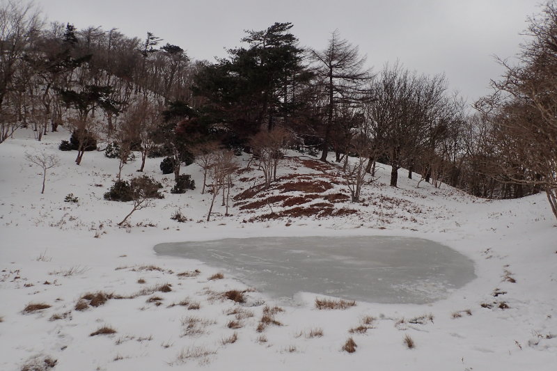 雪が少ないので凍った池がちゃんと池の姿をしていて良い。