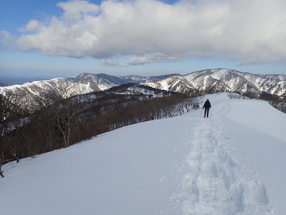 誠に寒々しい風景ではあるが、来てよかったと思える。台高主脈の稜線まで来ると、さすがにトレースがあった。