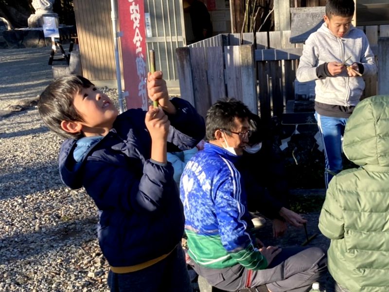 「すす玉鉄砲」を作ってやったら喜んで遊んでくれました。