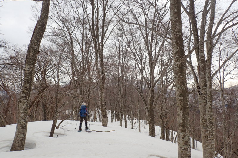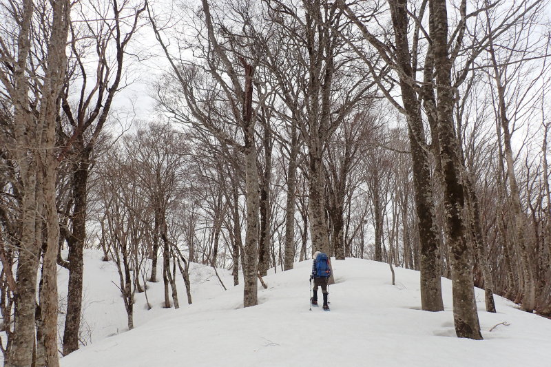 「いい尾根だなぁ、いいブナ林だなぁ、これまで見たブナ林の中で20本の指に入るなぁ」と、