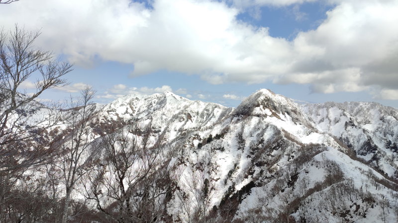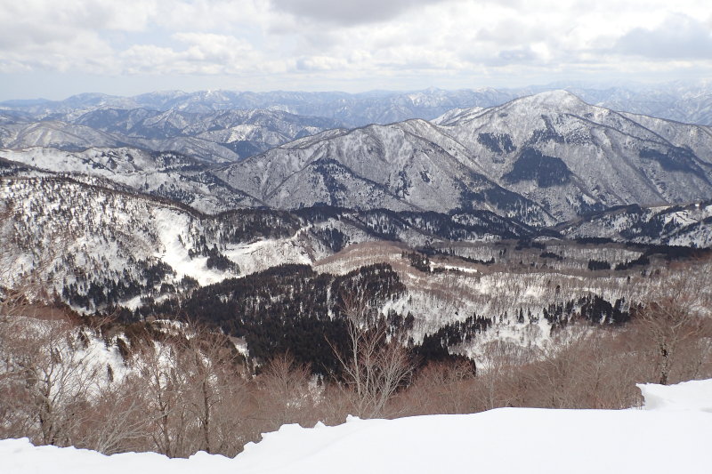 先日、木無山からお二人の辿った稜線を眺めていました。打波からの長い長い尾根はとても爺の足腰に負えるもんではないでしょうね。広域林道の雪がなくなったら、池ヶ原からヤブを漕いで…、などと、とんでもない妄想を逞しくし、ルートを目で追っておりました。