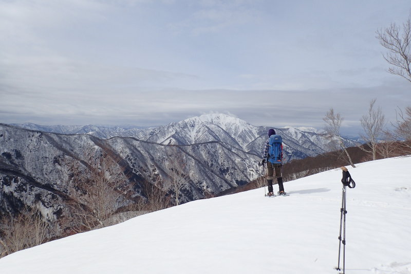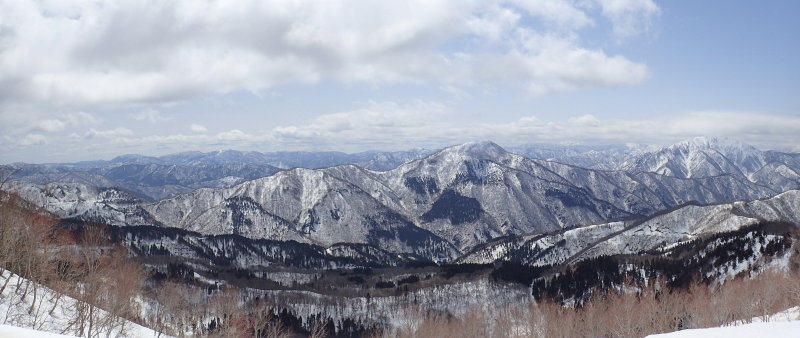 ここからは大嵐山までと打って変わって展望の雪尾根歩きが続く。この展望は伐採と引き換えのものなので、