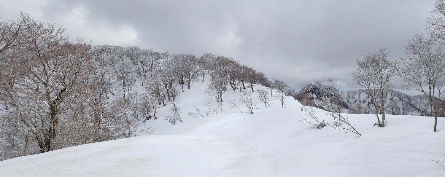 ・976から大嵐山山頂までは、そう、ブナや地形の妙に惹かれる人にとって、うっとりため息の続く尾根でしたね。