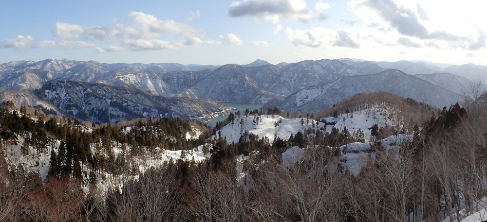反対側の眺めは九頭竜川を挟んで横に長く延びる越美国境稜線である。