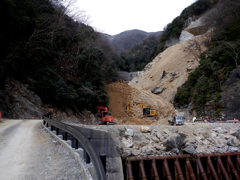 水の流れる余地がない。あの土砂を谷底まで取り除くのだろうか?