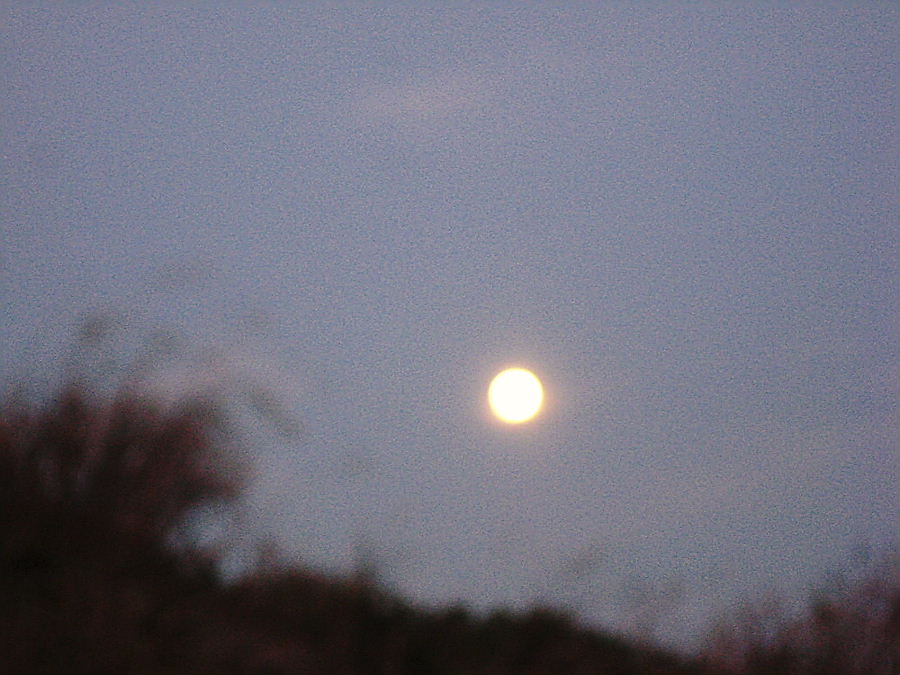 陽が沈むとまだ明るいのにお月様が昇ってきた。中秋の名月よりチョイ北ヨリに。