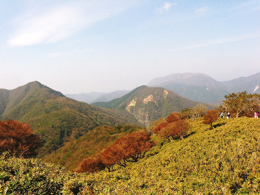 ● 色づいてきたモミジ、三池岳への登りはコブが沢山ある
