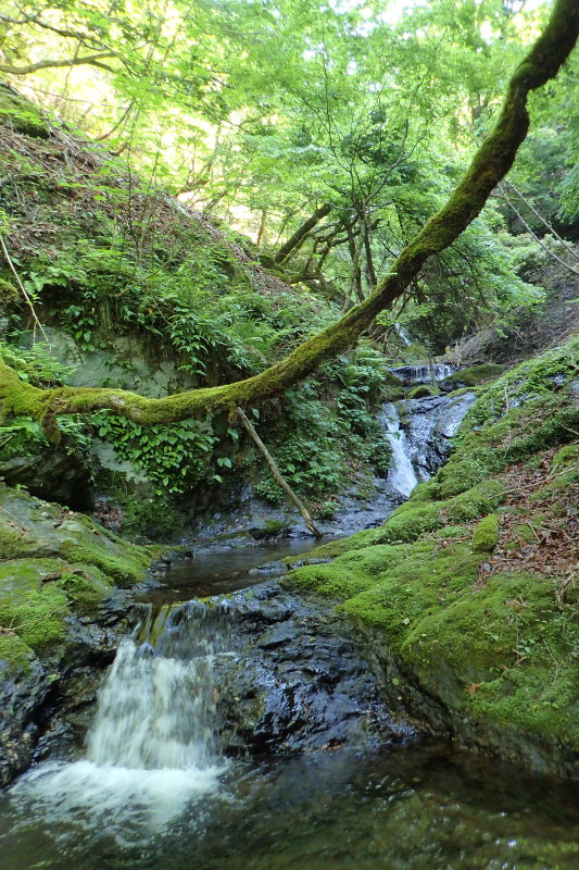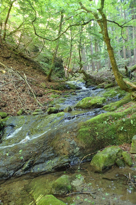 ひたひたと歩けそうな傾斜のナメですが苔むしていますね。水量が多くない谷ゆえでしょうか。見るからにつるりと滑りそうです。