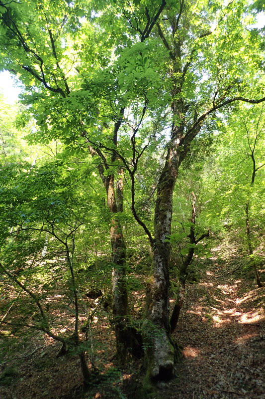 自然林に変わってなかなかいい雰囲気である。なんせあまりにもツルツルなので、積極的に直登しようという気が起こ