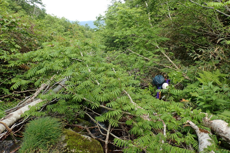その後も状況は一向に変わらず、沢登りをしに来たのかヤブ漕ぎをしに来たのかわからない行程が続く。