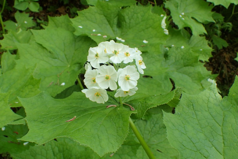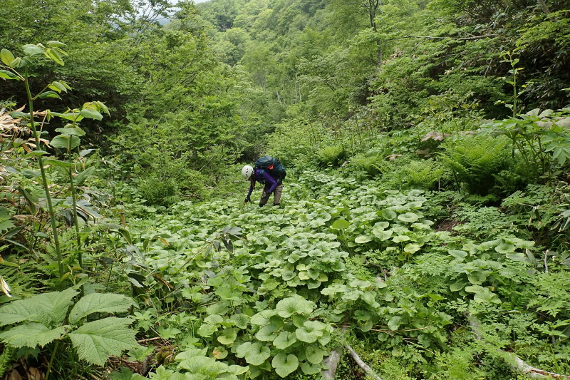 後は粛々と登って来た谷を戻るのみだ。しかしいいこともあるもので、谷芯を避けて巻いたところに思わぬサンカヨウ