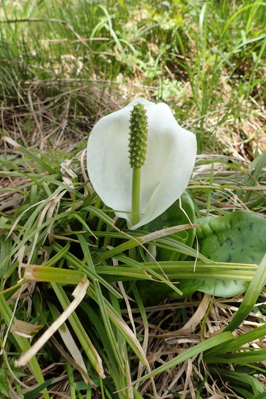 ミズバショウは湿原のまわりのヤブの中にちらほら咲いている程度だが、そんなことはどうでもいいのだ」