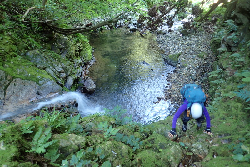 南向きの谷だし、もう少し日差しに悩まされるかと心配していたが、ほぼ樹林の中の遡行は暑さ知らずだった。