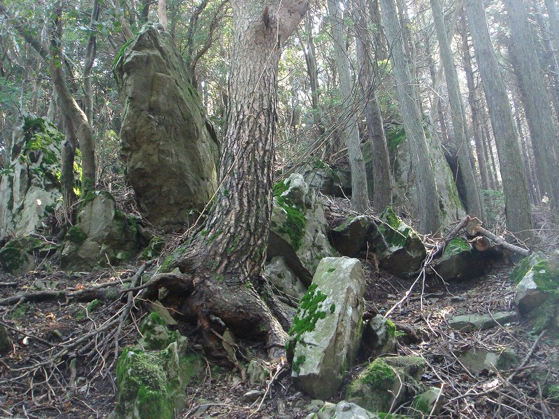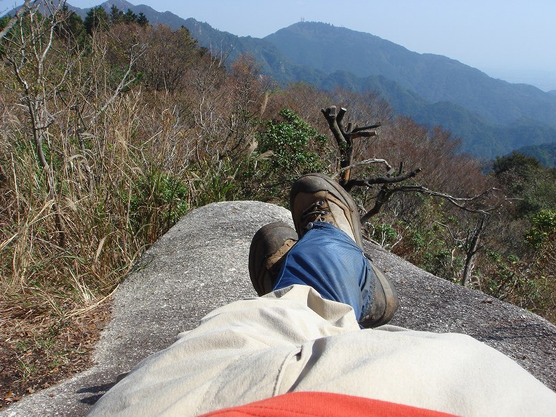 日曜日のわりには鈴鹿南部は人気が薄いのか、誰にも会わず、舟石をベッド代わりにごろんと寝転ぶと風が実に気持ちが良い。野登山や仙ヶ岳がはっきり見え、眼下には鬼が牙や新名神が見える。うとうとしたい気分だが先を急ぐことにしよう。