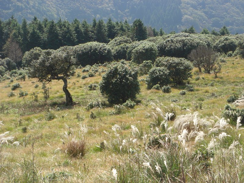 壊れた鹿除け金網に足をとられながら、南南西にくだるとそこは開けた平原状の「グミの木平」だった。絶好のランチ場である。インターネット上でも紹介されている風に痛めつけられたグミを探すと、簡単に見つけられた。自分の背丈より低いと思い込んでいたが想像以上に大きいグミの木でその幹は、こっちは想像通り、痛々しい。