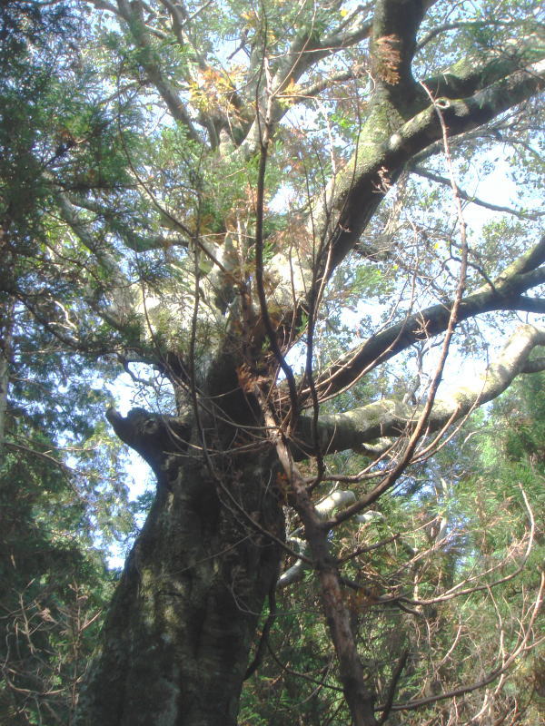 二重稜線のようになったくぼみをわずかに下ると、はっと目の前に巨木が現れた。