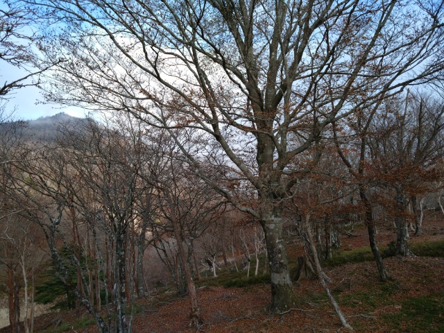 1153へも結構な急登で、もう11月なのに汗びっしょりになった。樹林はヒメシャラがたくさん目について、ブナもあった。