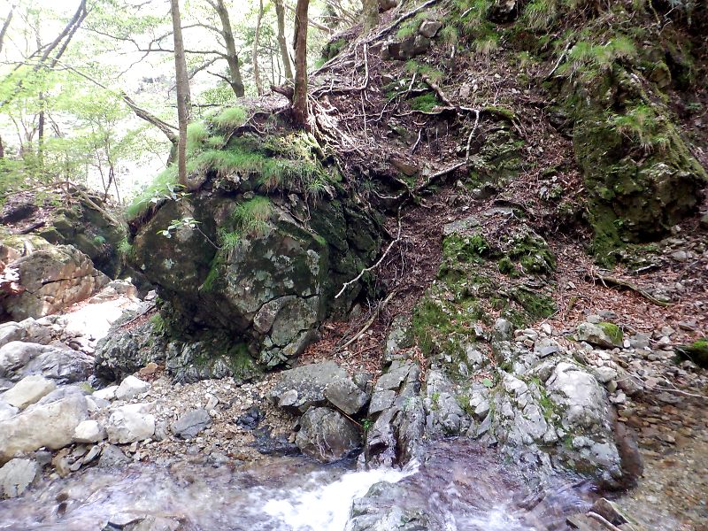 桃源郷には行けなくても、緩い右俣を辿れば苔辻に出合う。なぜか、そんな思い込みもあって右俣を辿ることにした。