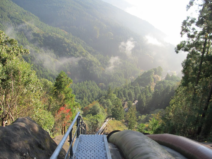 気が付けば標高600mまで上がってきていた、ここは林道の終点でも有り、発電所のパプライン上端でも有る、見下ろせば一気に下る長いパイプが二本。(何処から上がったのかなんて野暮なことは聞かないで :oops: