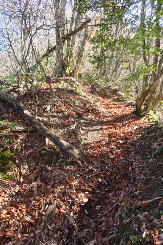 植林が切れると軽いアップダウンの続く雑木林の道となる。たまにヤブっぽいところも出てくるが、ほぼ登山