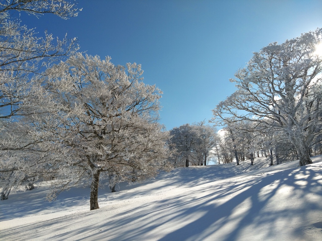 まっ白な雪原と霧氷で飾られた木々の風景は、なんてうつくしいのだろう、と思いました。