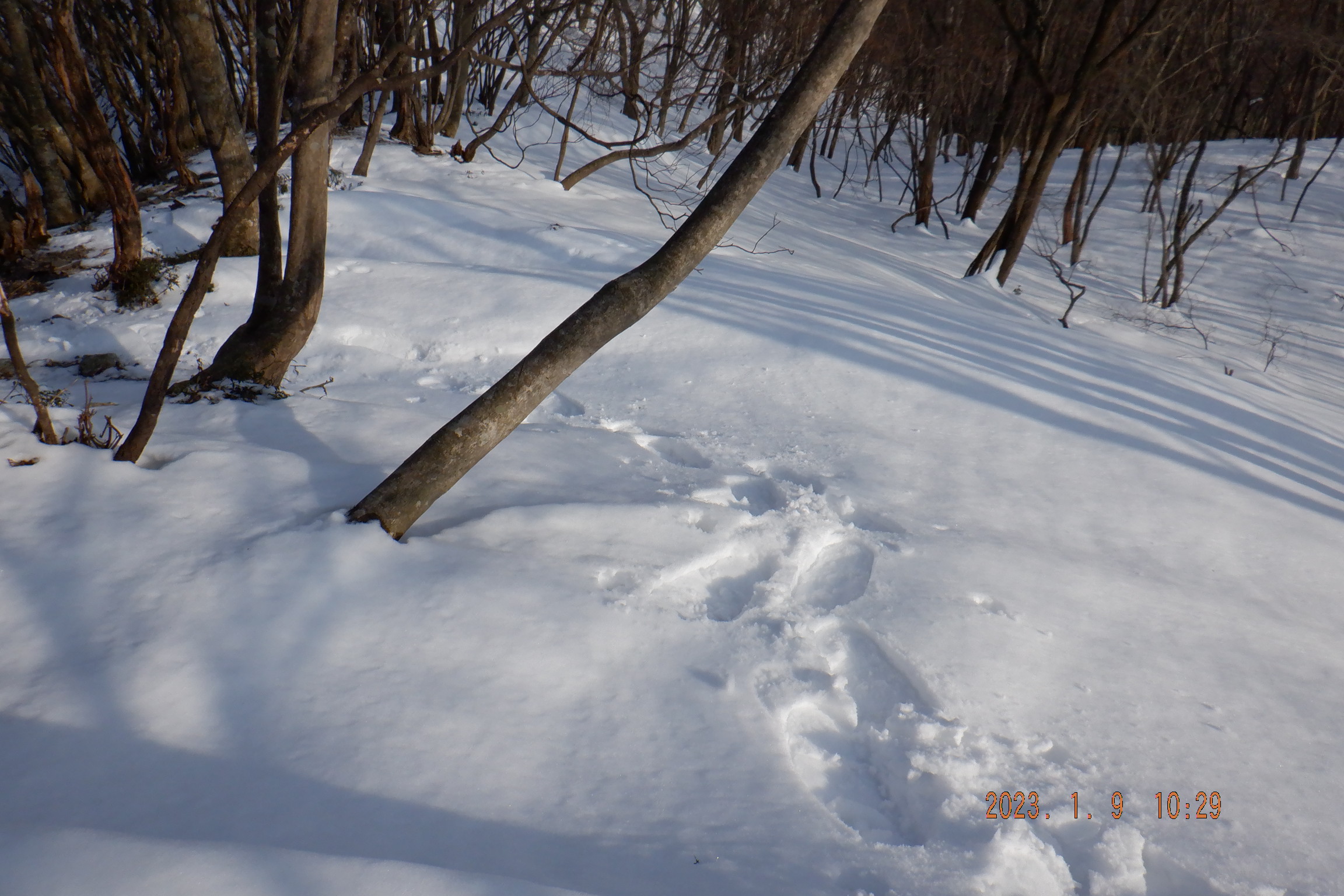 最終的に奥の平の手前から登山道を下りることにした。この登山道は雪道で降りるのは初めてだったので多少ワクワク感はあった。
