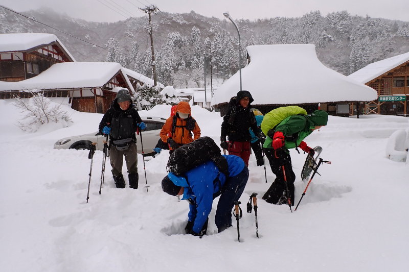 地元の物産店のおばちゃんをつかまえて交渉し、体力の有り余っている除雪隊の出動により、3台分の駐車スペースを無事確保、