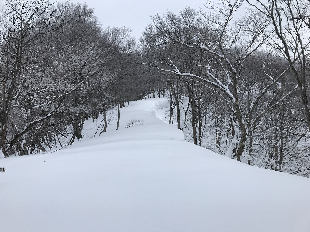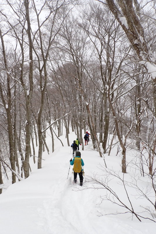 ラッセルラッセルラッセルの時間が流れて両側自然林となり、次第にブナの木も散見されるようになった。