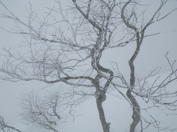 残念残念と言いながら頂上へ向かう。限られた視界では、いつ頂上に着くかもよく分からなかった。
